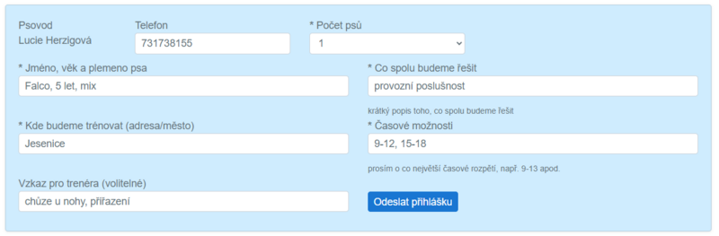 Přesný čas tréninku bude upraven individuálně dle časových možností a umístění klienta.